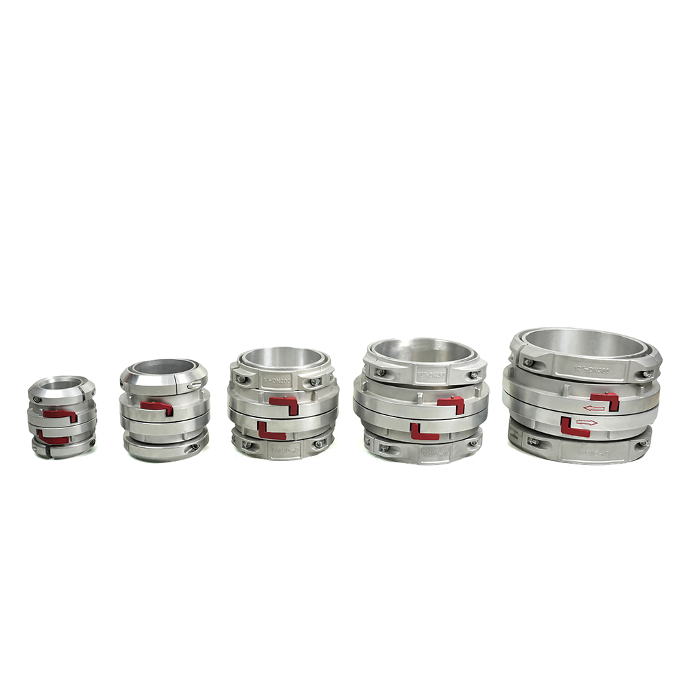 Spajanje prihvaća a Struktura s dvostrukim rukavima. Tijekom sastavljanja crijeva, crijevo se postavlja i preko gornjih i donjih kaitova i čvrsto se pričvršćuje koristeći stezaljke crijeva , osiguravajući tijesnu i pouzdanu vezu.